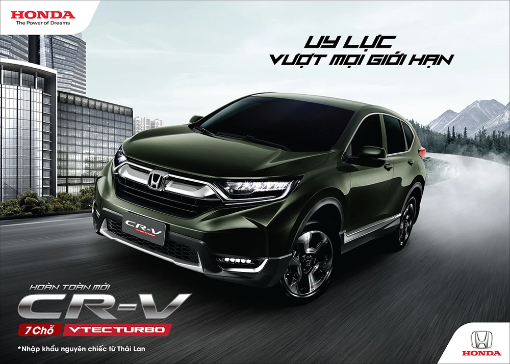 Mẫu xe CR-V thế hệ mới được nhập khẩu nguyên chiếc từ Thái Lan với ba phiên bản: L, G, E cùng 5 lựa chọn màu sắc bao gồm: Trắng ngọc quý phái, Ghi bạc thời trang, Đỏ lịch lãm, Đen ánh độc tôn và Xanh đen đẳng cấp (màu mới). Mẫu xe có giá bán lẻ đề xuất dưới 1,1 tỷ đồng và sẽ chính thức được bán ra thị trường Việt Nam từ tháng 1-2018 thông qua hệ thống Đại lý Honda Ô tô trên toàn quốc.