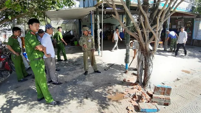 Lực lượng quy tắc đô thị đập bỏ các hạng mục xây dựng kiên cố. Ảnh: TẤN VIỆT