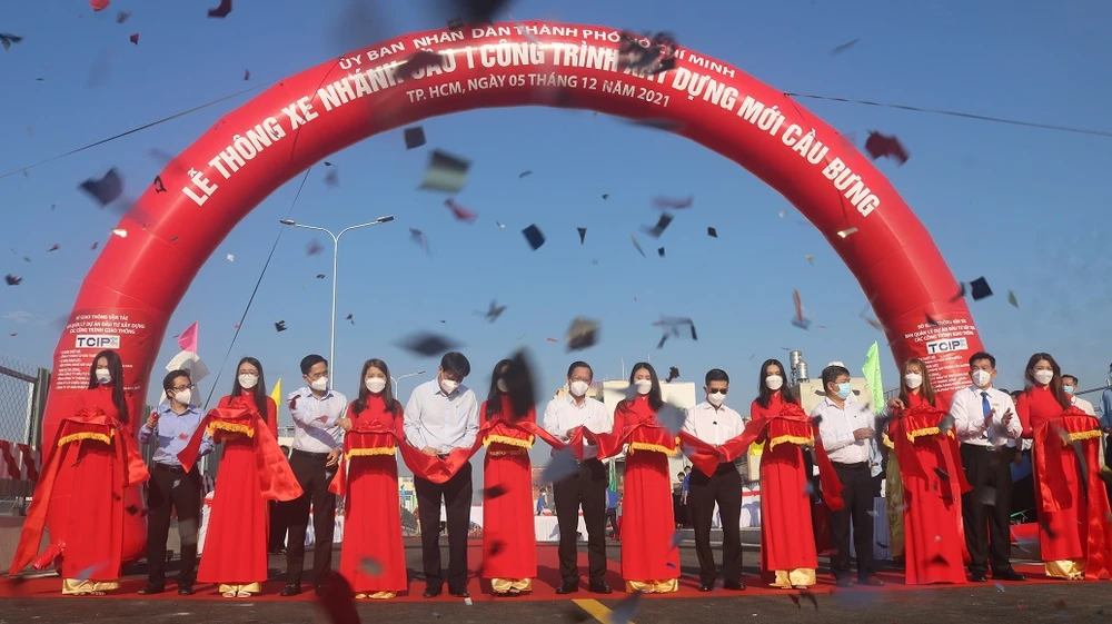 Cầu Bưng được hoàn thành sớm hơn tiến độ dự kiến 45 ngày và là công trình giao thông đầu tiên hoàn thành trong giai đoạn khôi phục sản xuất sau giãn cách tại TP.HCM.