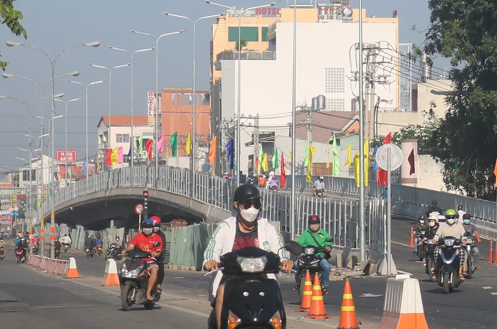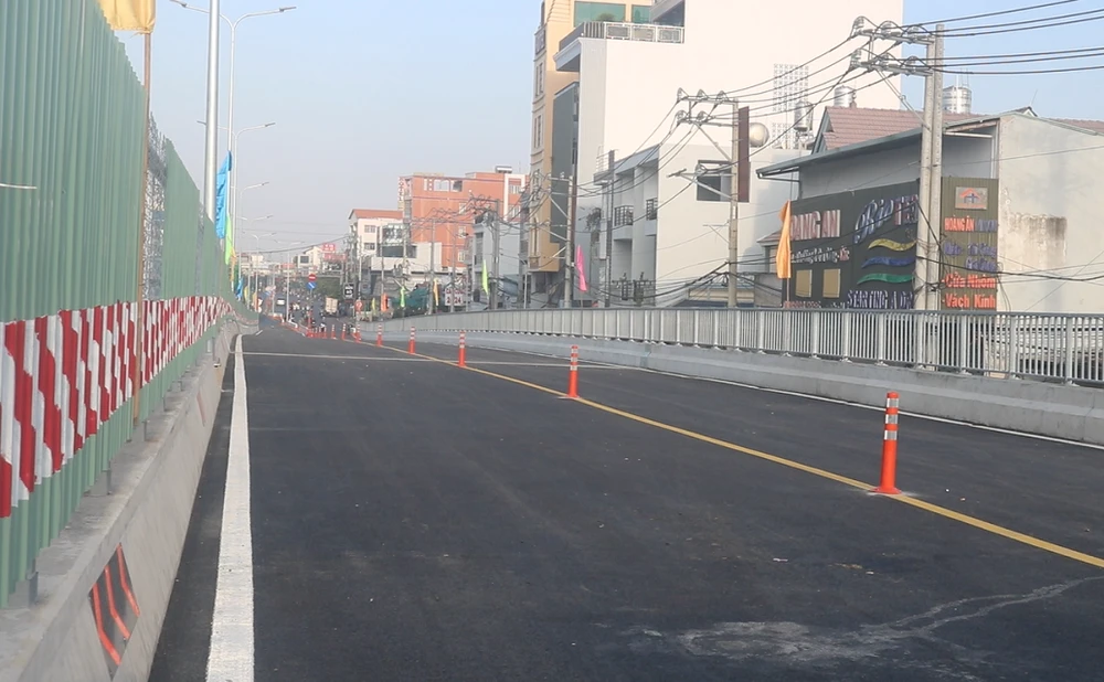 Nhánh 1 cầu Bưng đã hoàn thành và trải nhựa bằng phẳng. Ảnh: KHÁNH CHI