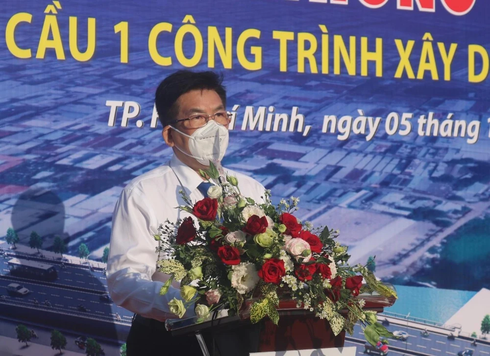 Ông Lương Minh Phúc, Giám đốc Ban Quản lý dự án xây dựng các công trình giao thông TP.HCM phát biểu tại sự kiện. Ảnh: KHÁNH CHI