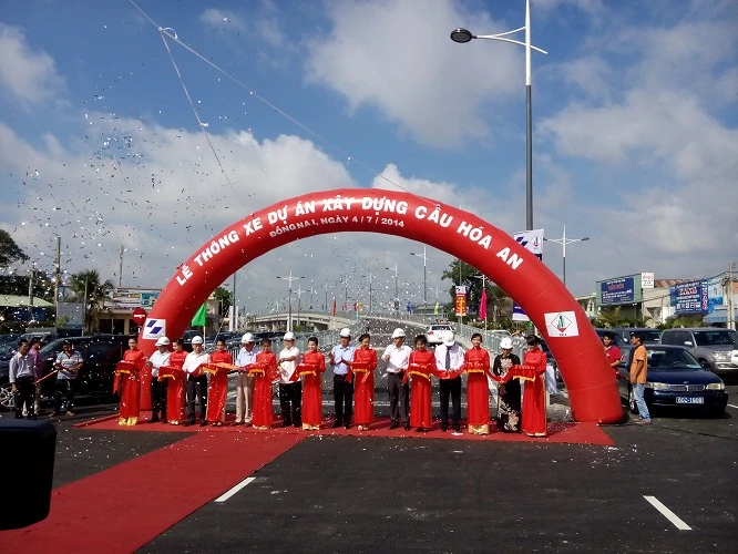 Cắt băng khánh thành cầu Hóa An. Ảnh: Tiến Dũng
