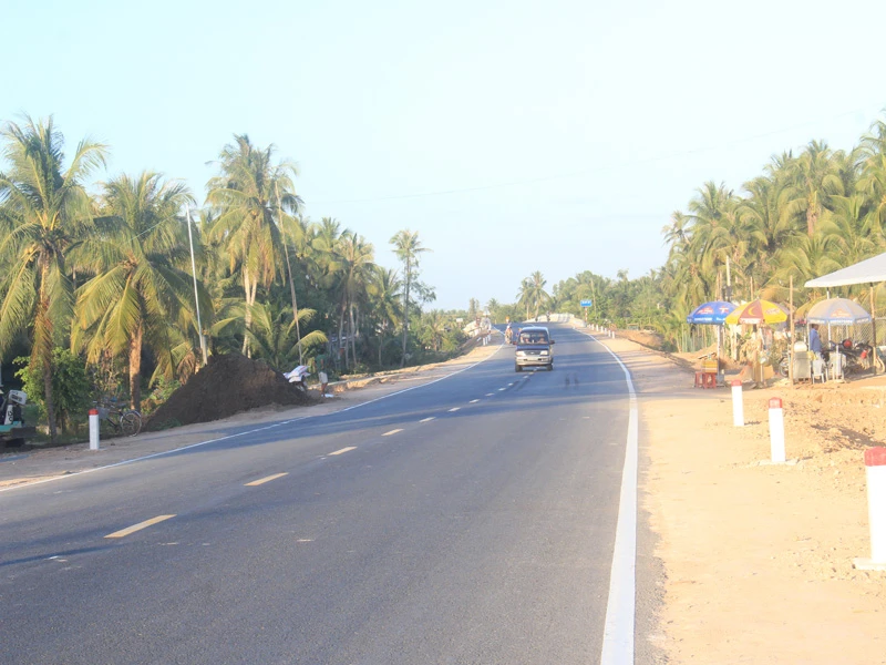 Đường QL60 mới dẫn vào cầu Cổ Chiên