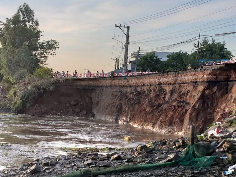 Điển hình, ngày 27-7-2019 đã xuất hiện rạn nứt mặt đường QL91 với chiều dài trên 60 m, ăn sâu vào 1/3 mặt đường chạy dọc theo bờ sông Hậu. Ngày 1-8-2019, một nửa mặt đường QL91, đoạn thuộc ấp Bình Tân, xã Bình Mỹ bị sạt xuống sông Hậu.