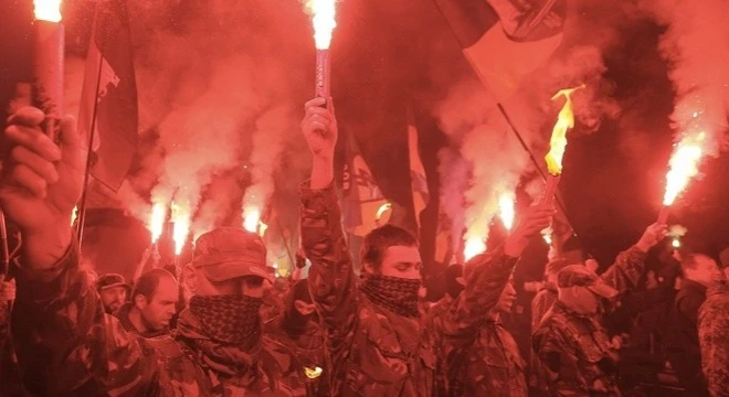 Nhóm cực hữu dân tộc cực đoan (Right Sector) do Dmytro Yarosh lãnh đạo tuần hành ở Kiev (Nguồn: Sputnik News)