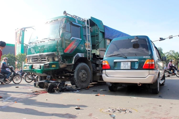 Nguyên nhân ban đầu được xác định là do khi đến đoạn đường trên, để tránh chiếc xe máy đang chở 3 thanh niên đang đi qua đường, tài xế xe tải bẻ lái gấp về phía bên trái. Tuy nhiên, do lúc này đang lưu thông trên đường với tốc độ khá cao nên xe tải vẫn va vào chiếc xe máy, sau đó lại tiếp tục va vào một chiếc xe ô tô khác do tài xế Võ Tân Thiện, sinh năm 1972 điều khiển. Vụ va chạm mạnh khiến 3 thanh niên đi xe máy bị cuốn vào gầm xe tải làm cho một người tử vong tại chỗ, 2 người khác bị thương nặng.