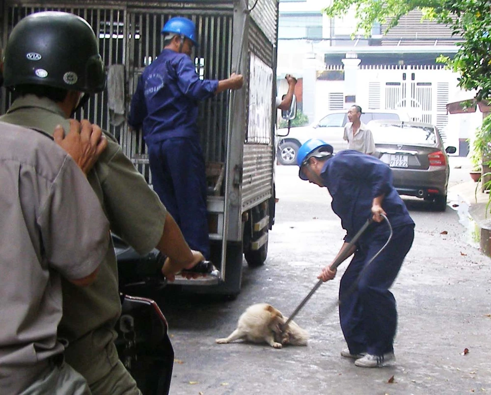 Chó chạy rông bị Chi cục Thú y TP.HCM bắt. Ảnh: TRẦN NGỌC