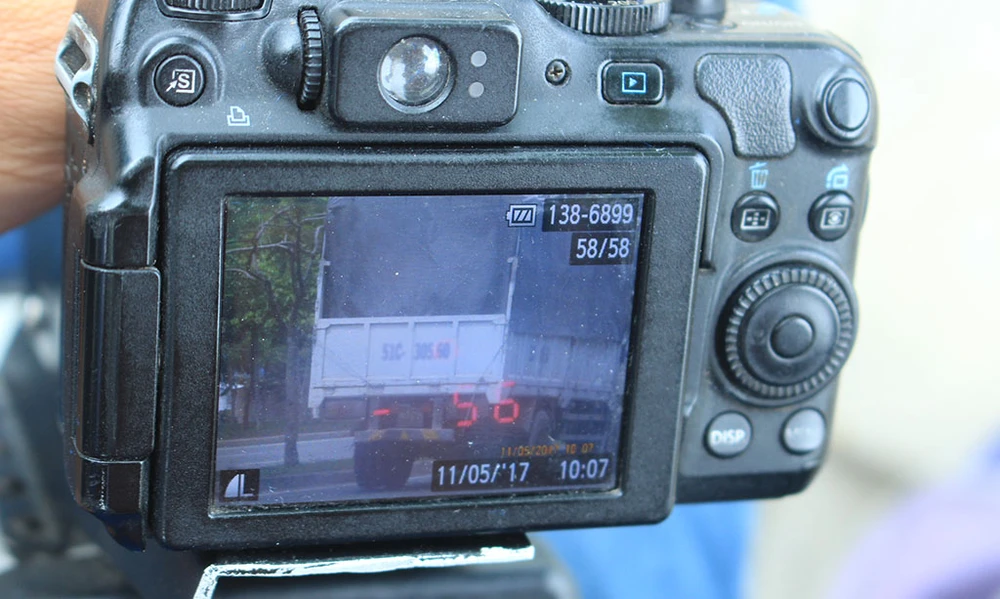 Máy bắn tốc độ ghi lại một xe tải chạy quá tốc độ quy định. Ảnh: PHƯỢNG