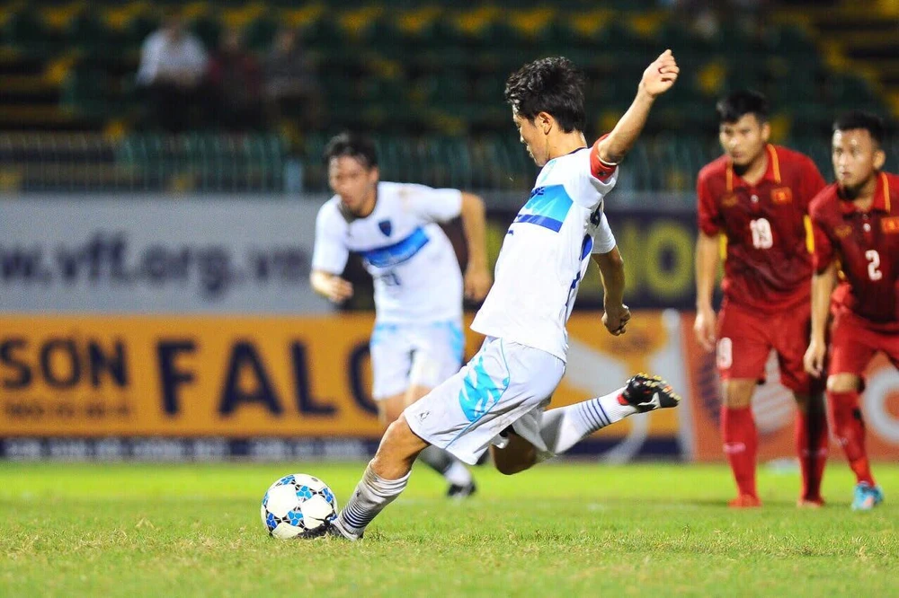 Pha truy cản của Nam Cung với đội trưởng Saito Kosuke dẫn đến U-19 Việt Nam bị phạt đền.
