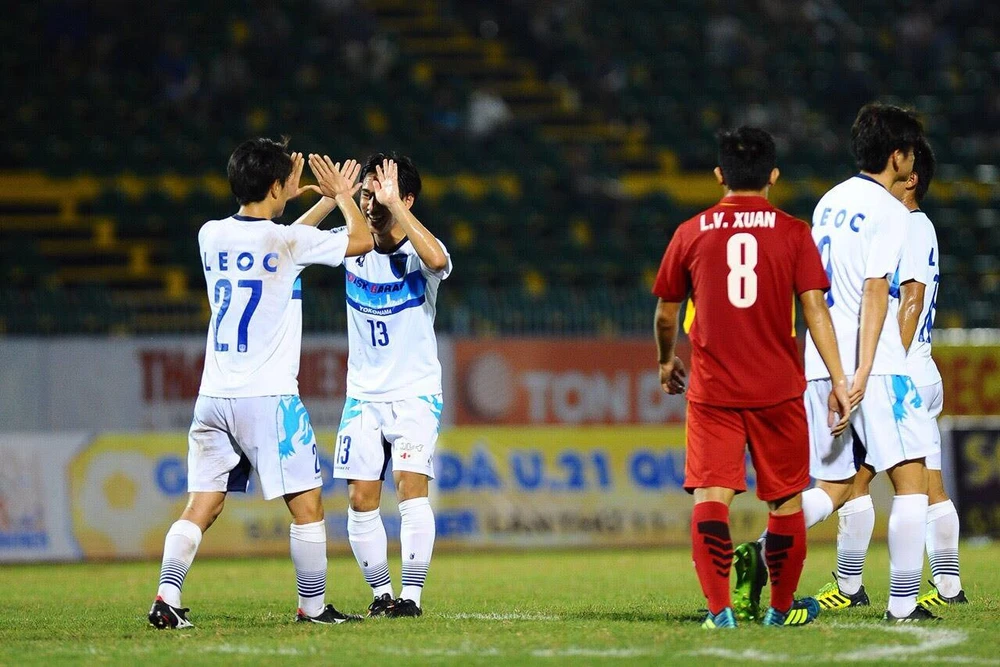 U-21 Yokohama ăn mừng bàn thắng thứ hai.