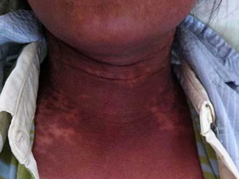 Trước đó tại TP.HCM đã xảy ra trường hợp dị ứng thuốc nghiêm trọng ở một bệnh nhân nam 55 tuổi. Ông đến BV ĐH Y Dược TP.HCM khám trong tình trạng bị nổi ban đỏ khắp người kèm các mụn nước, bóng nước, có chỗ đã bị hoại tử, bị viêm loét ở miệng và bộ phận sinh dục.