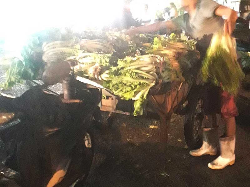 Xe lôi bán rau đang hoạt động trong chợ đầu mối Hóc Môn. Ảnh: TRẦN NGỌC