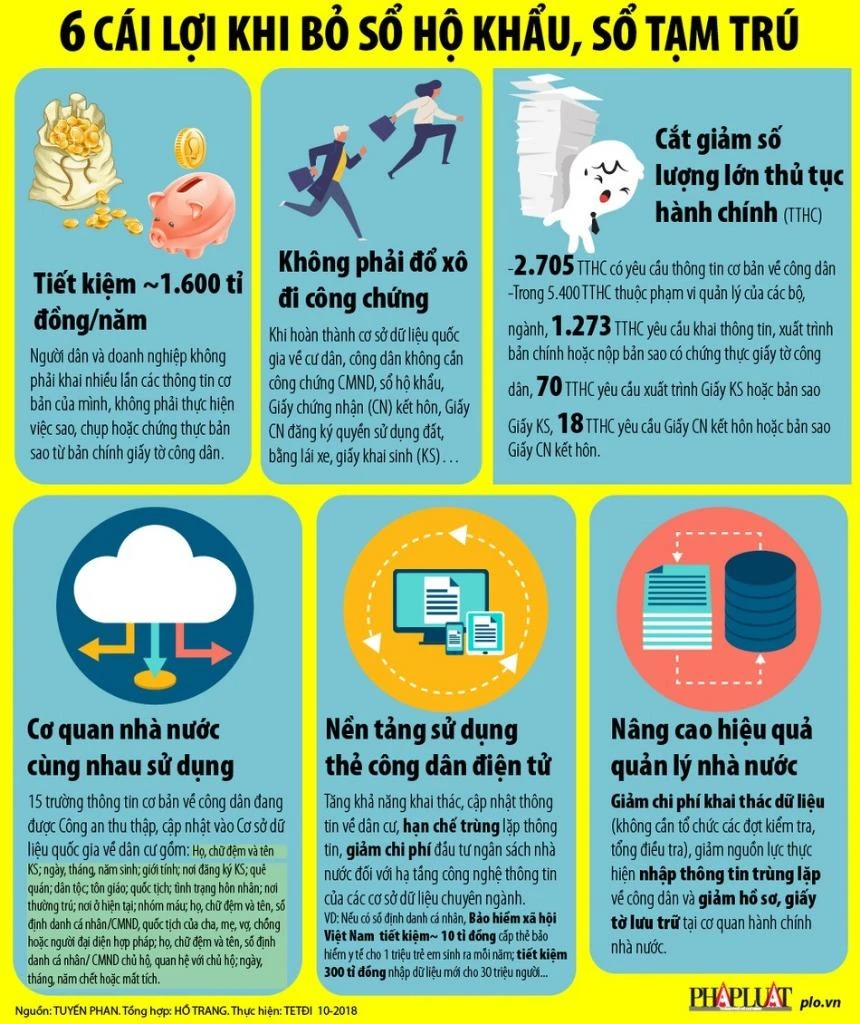 Theo đó, để đơn giản hóa thủ tục hành chính, giấy tờ công dân liên quan đến quản lý dân cư, Bộ Công an sẽ quản lý việc cư trú thông qua mã số định danh cá nhân và cập nhật kết quả đăng ký trên Cơ sở dữ liệu quốc gia về dân cư. Bấy giờ, các cơ quan, tổ chức, cá nhân được phép khai thác chung cơ sở dữ liệu này để xử lý công việc. Cũng khi ấy, người dân không còn phải nhọc nhằn nộp tới nộp lui sổ hộ khẩu.