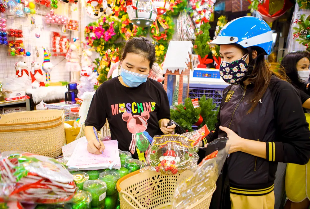 Đường Hải Thượng Lãn Ông (Quận 5, TP.HCM) bán đồ giáng sinh, lồng đèn, quả cưới...tùy theo từng mùa. Năm nay do ảnh hưởng của dịch COVID-19 nên không khí có phần trầm lắng hơn so với những năm trước.