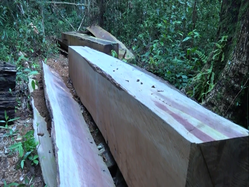 Hiện trường vụ chặt hạ gỗ du sam trong Khu Bảo tồn thiên nhiên Nam Nung.