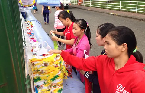 Ông Củ Phát Nghiệp, Chủ tịch Công đoàn Công ty TNHH Pouyen Việt Nam, nói đó là những nữ công nhân đang mang thai và có con nhỏ được ưu tiên về trước một tiếng theo quy định chứ ca chiều tan lúc 16 giờ. Đa phần chị em không vội về nhà mà tấp ngay vào khu chợ bày dọc hàng rào sắt kiên cố bao quanh công ty trên đường số 7, phường Tân Tạo, quận Bình Tân, TP.HCM.