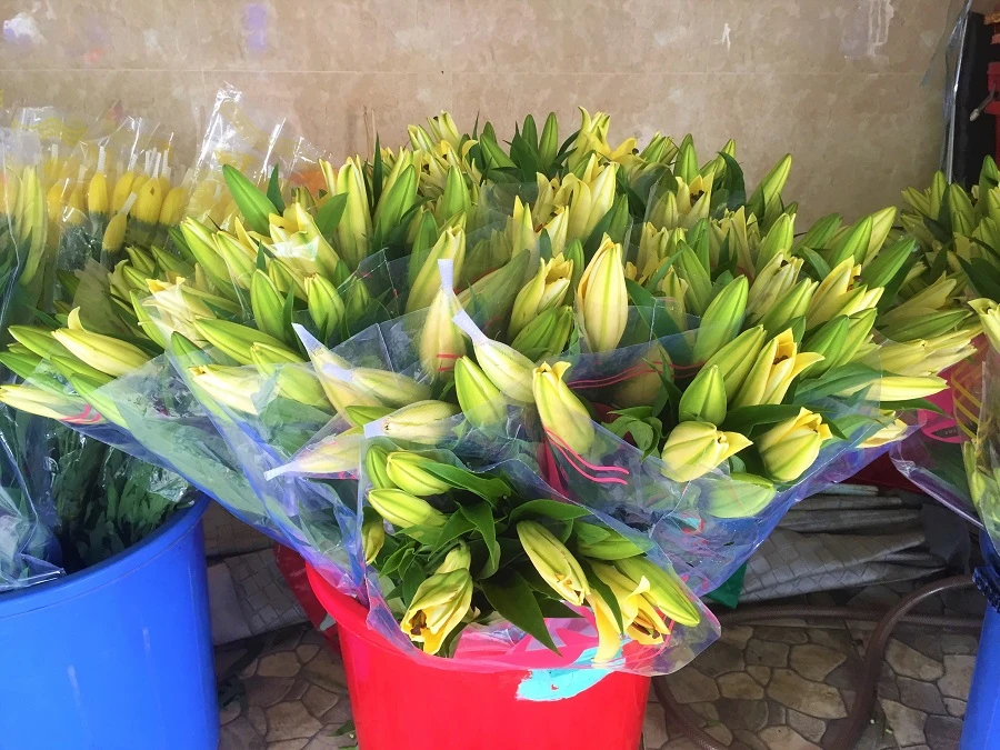 Hoa ly vàng giảm giá chỉ còn 25.000 đồng/bó.