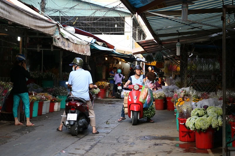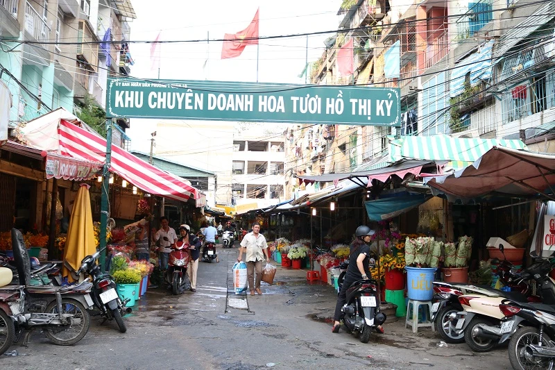 Một góc nhỏ trong khu chợ hoa Hồ Thị Kỷ.