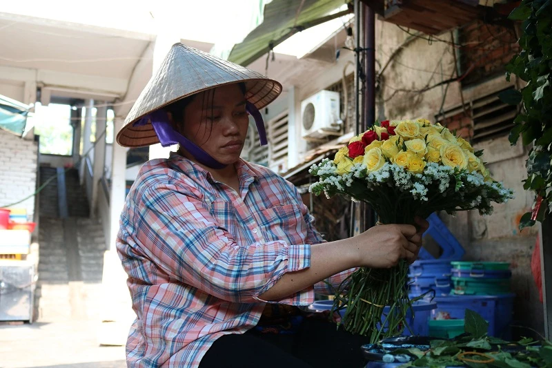 Chị Bích bán hoa hồng trong một góc nhỏ ở khu chợ đã nhiều năm nay.