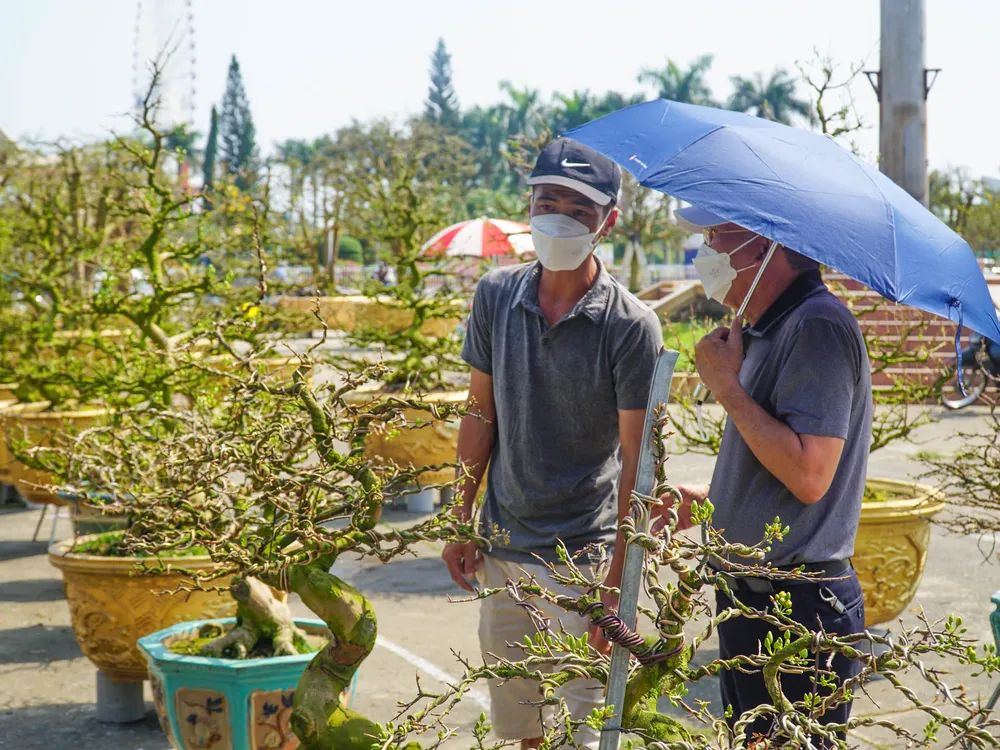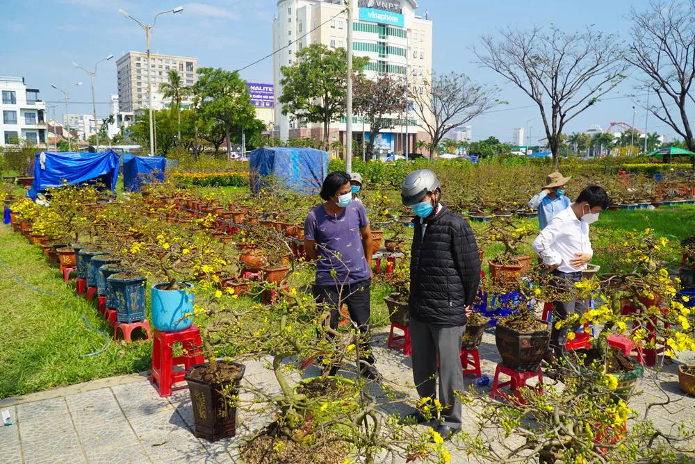 Chị Phạm Thị Thúy Vân, nhà vườn trồng mai đến từ huyện Thăng Bình (tỉnh Quảng Nam) cho biết, dịp Tết này, số lượng cây hoa chị đưa đến Đà Nẵng bằng một nửa so với năm trước vì lo lắng dịch bệnh, ít khách mua. Giá mỗi cây dao động từ 2 triệu đến 50 triệu đồng.
