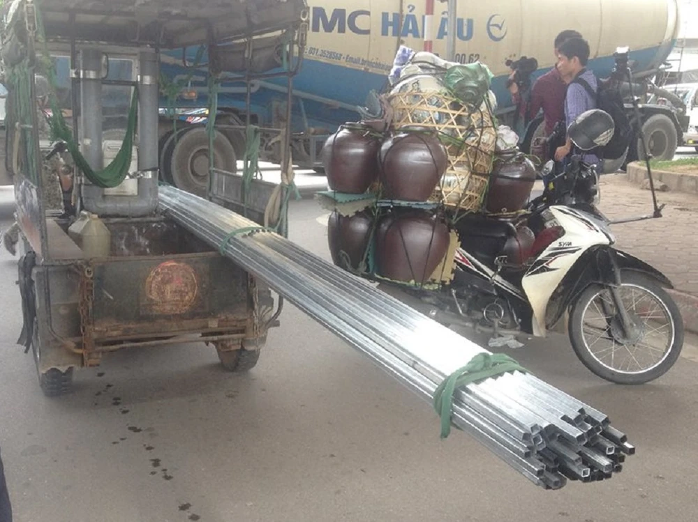 Đáng chú ý, vào khoảng 9 giờ 45, lực lượng chức năng phát hiện một tài xế xe ba gác ngang nhiên chất hơn 30 ống thép dài loằng ngoằng đang chạy vun vút theo hướng Thanh Trì – Giải Phóng. Tổ công tác ra hiệu yêu cầu chiếc xe dừng lại để xử lý, tuy nhiên, tài xế xe ba gác lập tức quay đầu với ý định bỏ trốn. Kiên quyết xử lý, các chiến CSGT đã kịp thời giữ được phương tiện này.