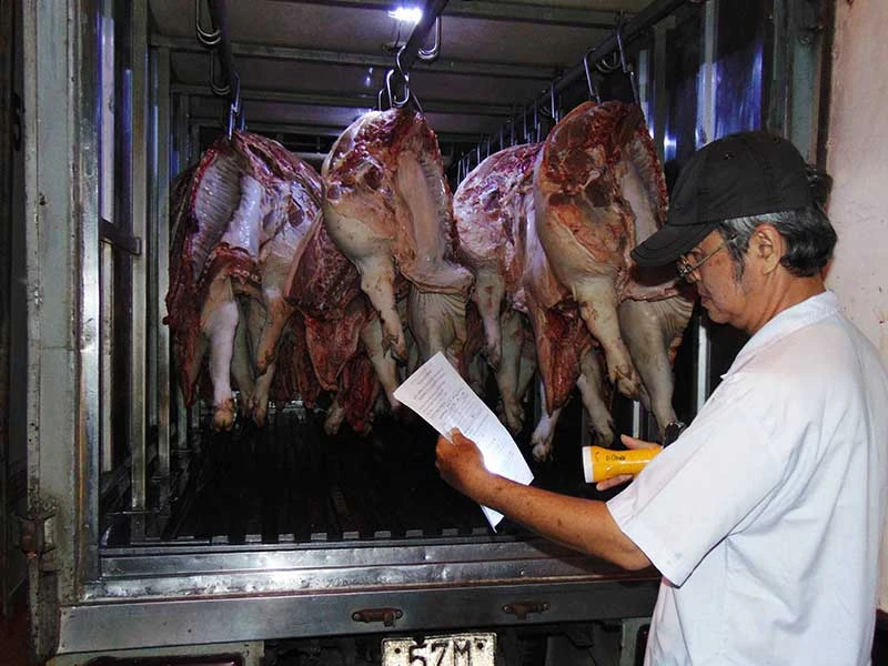 “Chỉ trong ngày 4-8, các đoàn liên ngành TP.HCM kiểm tra đột xuất và phát hiện bảy trường hợp thịt heo và gà từ các tỉnh đưa vào TP.HCM nhưng không có giấy chứng nhận kiểm dịch. Chẳng những không có giấy kiểm dịch, thịt heo và gà còn được vận chuyển trên những xe không đảm bảo vệ sinh thú y. Ngoài phạt mỗi cá nhân vi phạm 3,5 triệu đồng, các đoàn kiểm tra còn buộc kiểm dịch lại lô hàng” - ông Nguyên nói.