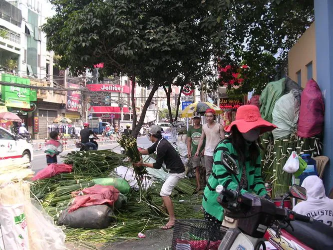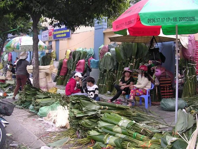 Gọi là chợ cho oai, chứ khu vực bán lá chỉ khoảng 500 mét, từ giao lộ Phạm Văn Hai kéo dài cho đến ngã tư Bảy Hiền (Q.Tân Bình, TP.HCM). Mặt hàng chủ yếu của chợ là lá dong, lá chuối, dây lạt, khuôn gỗ làm bánh… Những nguyên vật liệu gắn liền với món bánh chưng, bánh tét truyền thống trong ngày Tết của người Việt.