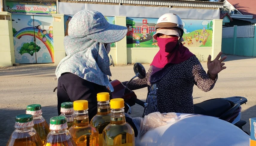 Người phụ nữ đến mua 100 thùng mì tôm rồi nhờ UBND xã Phước Nam trao lại cho người trong khu vực cách ly