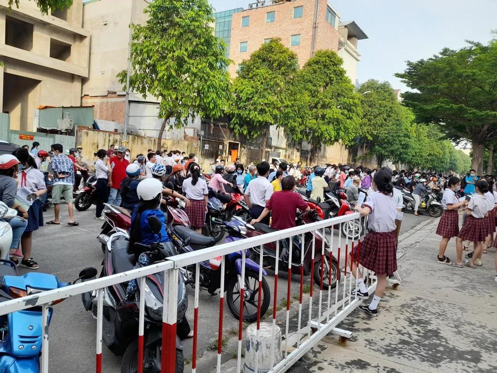 Tuy nhiên, sáng nay, từ khoảng 6 giờ 30, tại cổng trường Trường THCS Phan Văn Trị (quận Gò Vấp, nhiều phụ huynh và thí sinh đã tập trung rất đông tại khu vực cổng trường vì cổng trường vẫn đóng cửa. Nhiều phụ huynh tỏ ra lo lắng và không yên tâm trở về khi con chưa được vào điểm thi an toàn, khiến khu vực này khá lộn xộn, tràn hết lòng đường, gây cản trở việc đi lại của người dân.