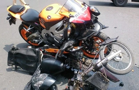 Mô tô tông xe máy đã...tan nát như thế này đây
