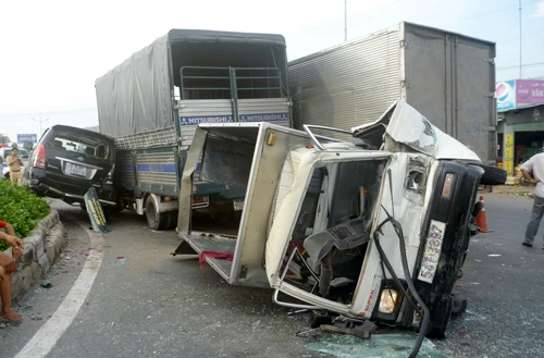 Một vụ tai nạn liên hoàn xảy ra trên đường dẫn vào cao tốc TP HCM - Trung Lươnghồi tháng 12-2014