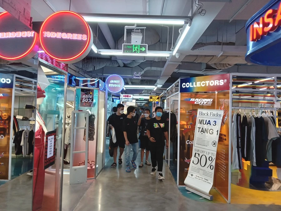 Tại khu vực này có khoảng 70 gian hàng thời trang, mỗi thương hiệu được bài trí sắp xếp với nhiều màu sắc tươi trẻ, nội thất được thiết kế độc đáo nên thu hút giới trẻ vừa đến mua sắm và “check in”.