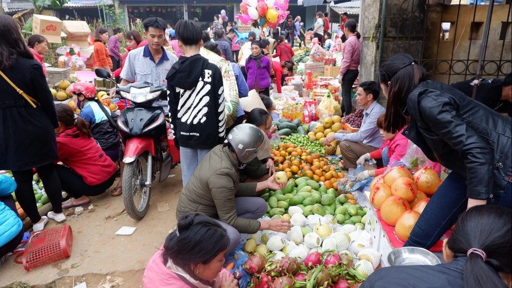 Phiên chợ Tết của người dân tộc Tày cuối năm cũng có nhiều điểm thú vị, hấp dẫn. Nếu như bình thường người dân mang chó, mèo, gà, vịt và nhiều loại nông sản ra trao đổi thì những ngày này hàng hóa Tết, các thực phẩm ngày Tết nhiều vô kể. Chợ cũng họp cả ngày thay vì chỉ kéo dài đến 10 giờ sáng ở những phiên chợ thường.