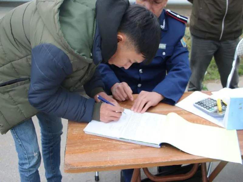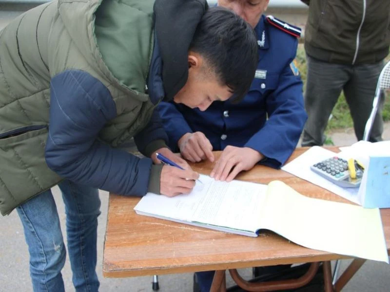 Tài xế chở quá tải ký vào biên bản xử phạt. Ảnh: V.HỒNG
