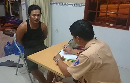 Tài xế Lương Văn Hùng đang làm việc với cơ quan chức năng. Ảnh: PN