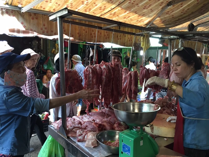 Bà Nhi bán thịt heo chợ Gò Vấp cho biết kinh nghiệm những ngày nghỉ lễ dài ngày người dân đi chơi hết nên lượng hàng lấy ít đi so với ngày thường 20-30 kg. Vì vậy, giá thịt các loại trong ngày lễ không tăng. Cụ thể, thịt đùi 90.000 đồng/kg, thịt ba rọi, thịt nạc heo 100.000 đồng/kg, sườn non 150.000 đồng/kg. Riêng xương, ba rọi, giò heo 80.000 đồng/kg bán chạy trong hai ngày qua do người dân mua về nấu nướng sum họp gia đình.