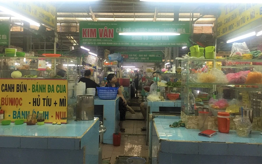 Ngành hàng ăn uống tại chợ vẫn kinh doanh bình thường nhưng vắng khách.