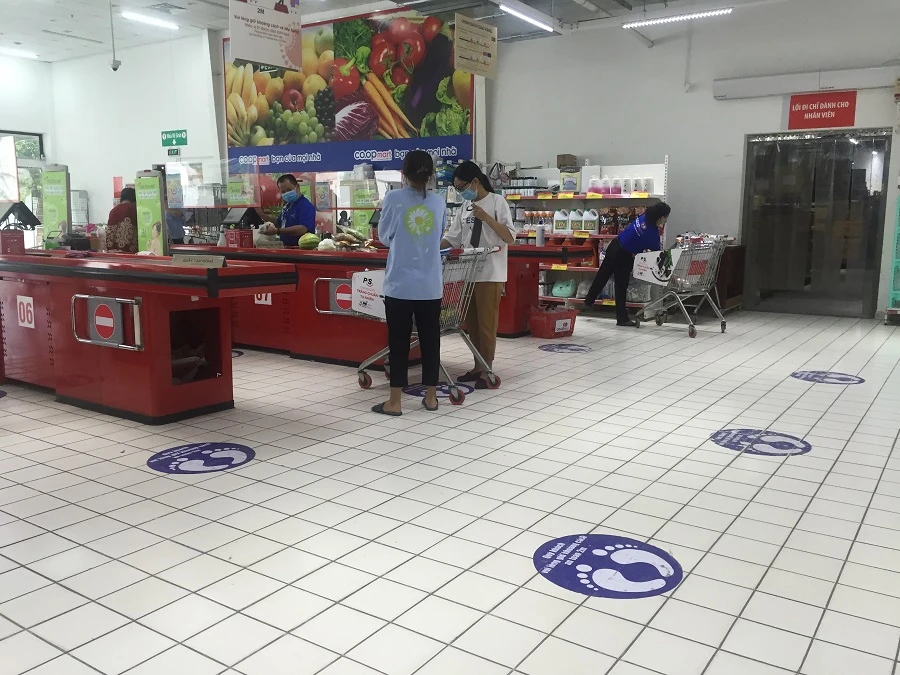 Khoảng cách 2m tại quầy tính tiền siêu thị Co.opmart SCA Âu Cơ