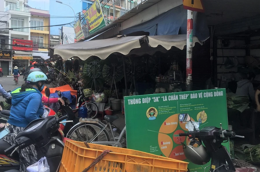 Thông điệp 5K được đặt bên hông chợ Phạm Văn Hai quận Tân Bình