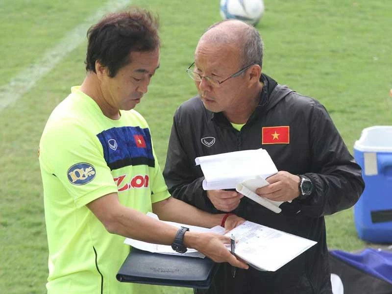 “Phù thủy” Park Hang-seo còn có trong tay dàn trợ lý cực kỳ xuất sắc, trong đó đắc lực nhất là trợ lý Lee Young-jin, giúp ông làm thay đổi diện mạo bóng đá Việt Nam. Ảnh: NGỌC DUNG