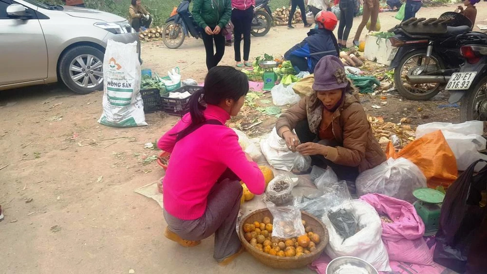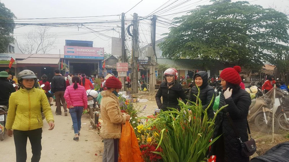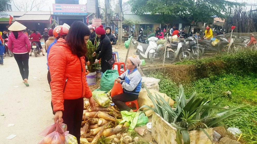 Hoa và thực phẩm ngày Tết là hai món hàng chính được người dân đem trao đổi.