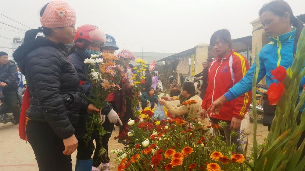 Rất đông người dân đi mua hoa để chưng Tết.