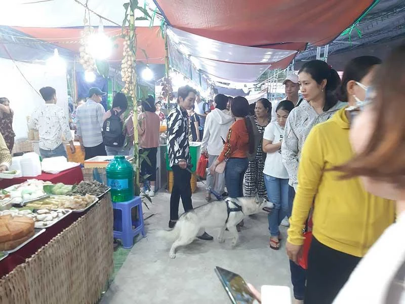 Chó không rọ mõm được chủ dắt đi lễ hội bánh dân gian Nam bộ ở Cần Thơ mới đây. Ảnh: HẢI DƯƠNG