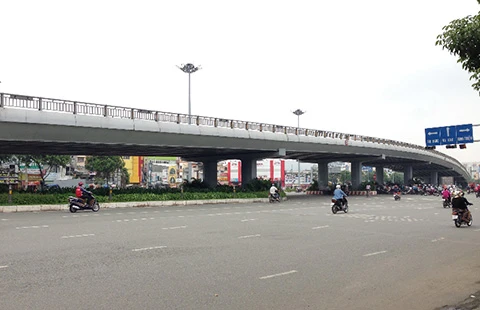 Phần gầm cầu vượt phía gần về cầu Văn Thánh dự kiến cải tạo thành chỗ trú mưa. Ảnh: Q.Như