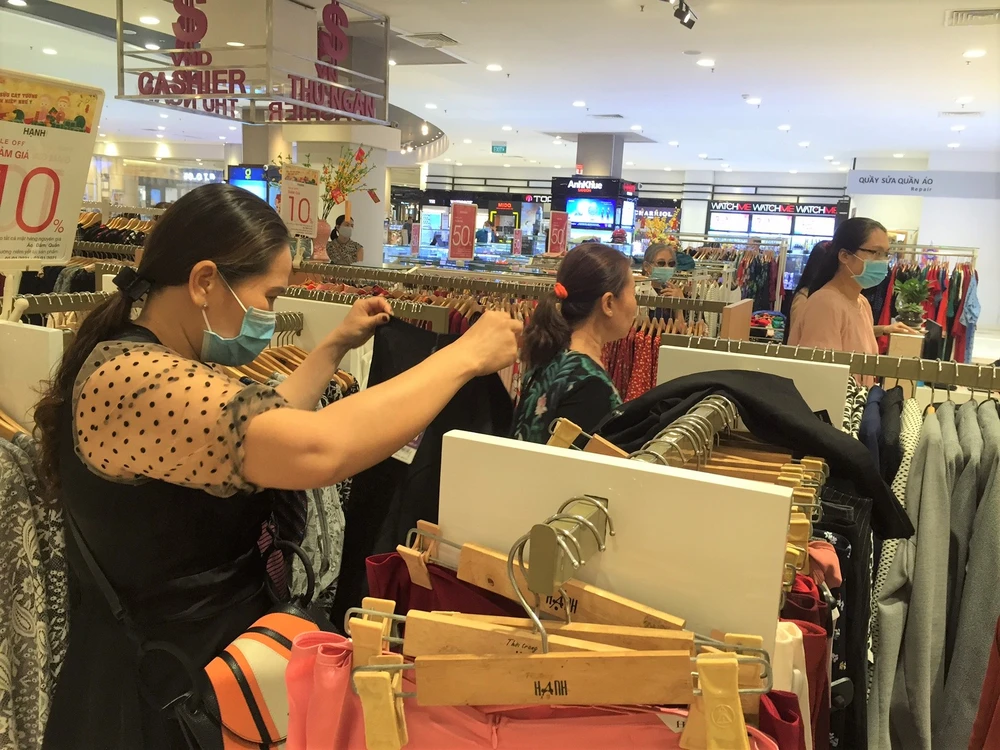 Nhiều hãng thời trang đang giảm giá và quần áo phục vụ tết thu hút nhiều người dân ghé thử. Ảnh: TÚ UYÊN