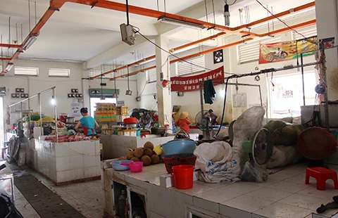 Chợ Văn Thánh buôn bán rất ế ẩm, sạp trống được dùng để đồ đạc. Ảnh: LÊ THOA