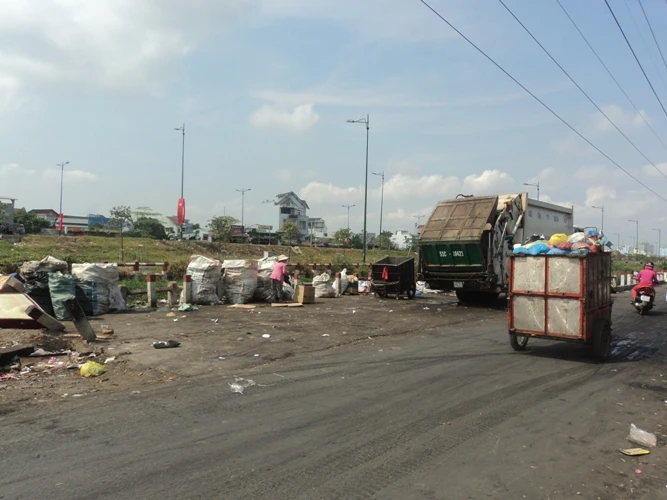 Rác được phân loại ngay trên đường Kha Vạn Cân nằm cạnh đường ray tàu, ngay bên cạnh chợ khu tự phát