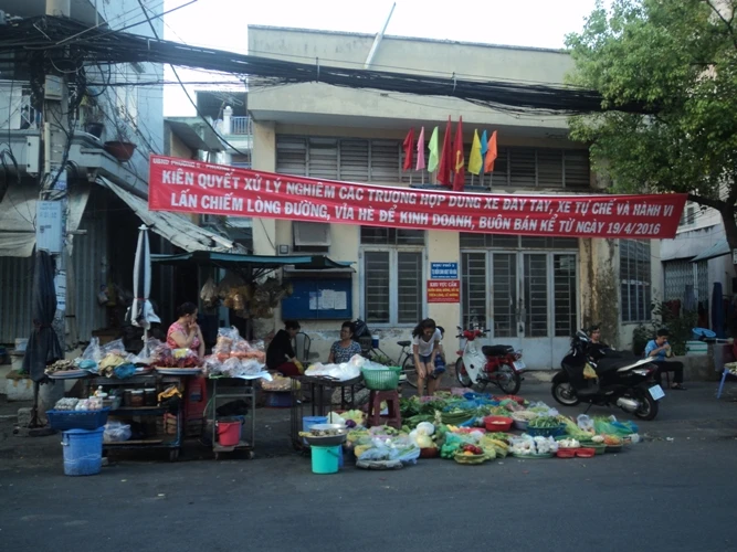 Từ năm 2004, đường Hoàng Hoa Thám được mở rộng, nhu cầu kinh doanh trên mặt đường xuất hiện. Ngay dưới băng rôn tuyên truyền cấm buôn bán mà lại buôn bán đông đúc