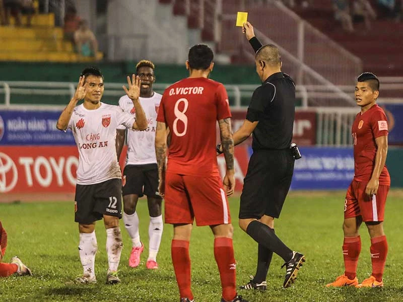 Lượt đi V-League, vấn đề nổi cộm nhất là công tác trọng tài. Ảnh: HUY PHẠM