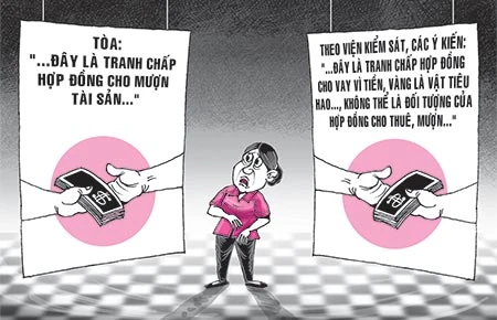 Trong cả ba vụ án trên, VKS huyện Châu Thành lại có quan điểm khác hẳn. Theo VKS huyện, cả ba vụ án đều là tranh chấp hợp đồng vay tài sản chứ không phải hợp đồng mượn tài sản.